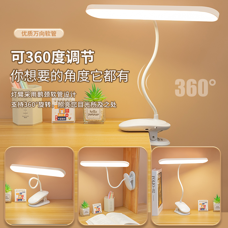 充电式 床头灯卧室书桌学生宿舍护眼学习专用阅读灯 台灯夹子可夹式