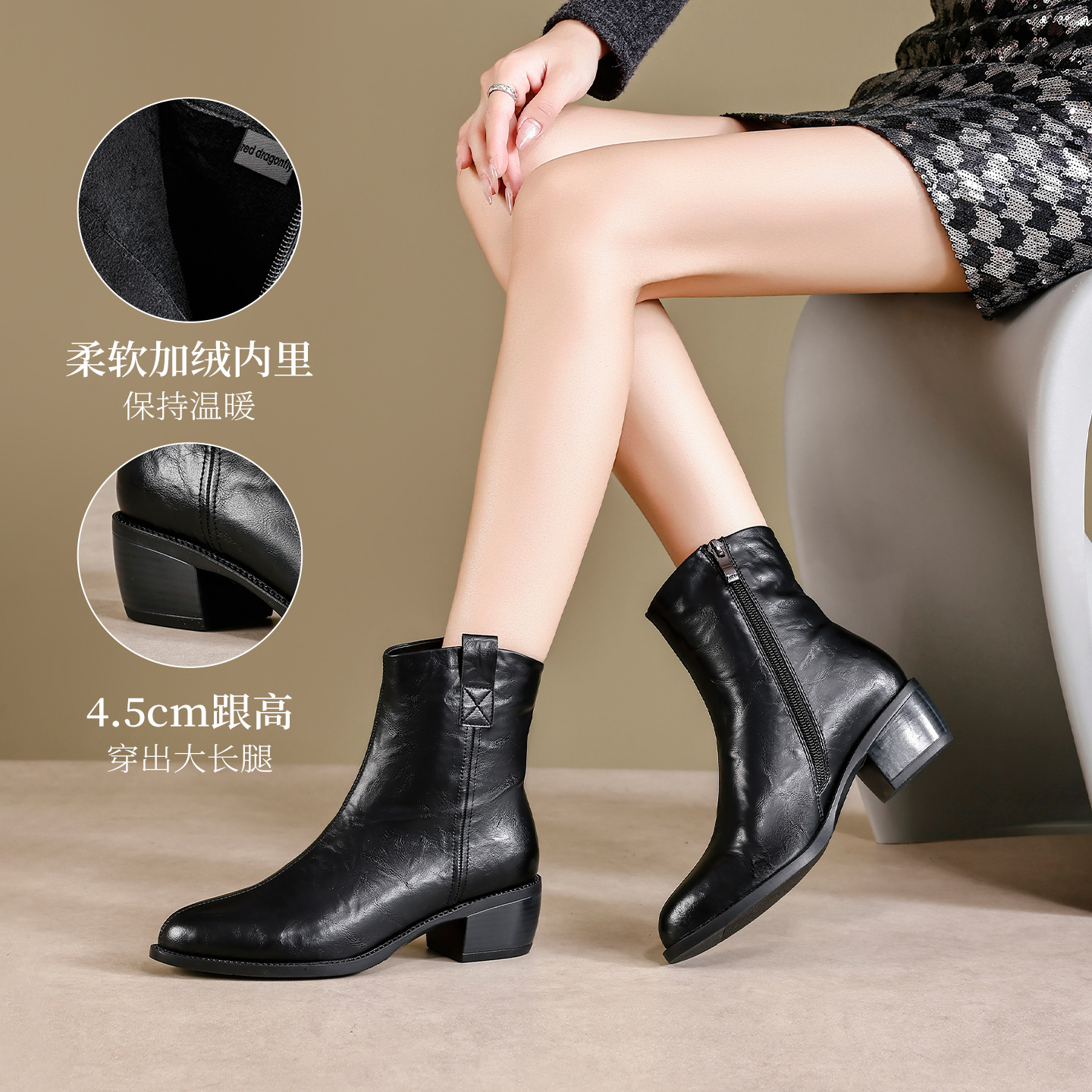 达芙妮棕色马丁靴女2025新款 美拉德靴子加绒德训短靴 拳击靴秋冬季