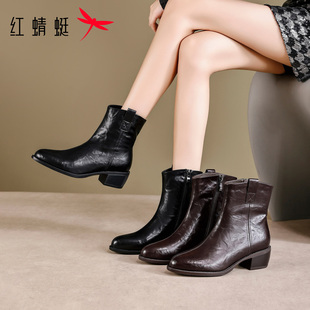 达芙妮厚底马丁靴女款 春秋高跟短靴女瘦瘦靴黑色靴子短靴 2025新款