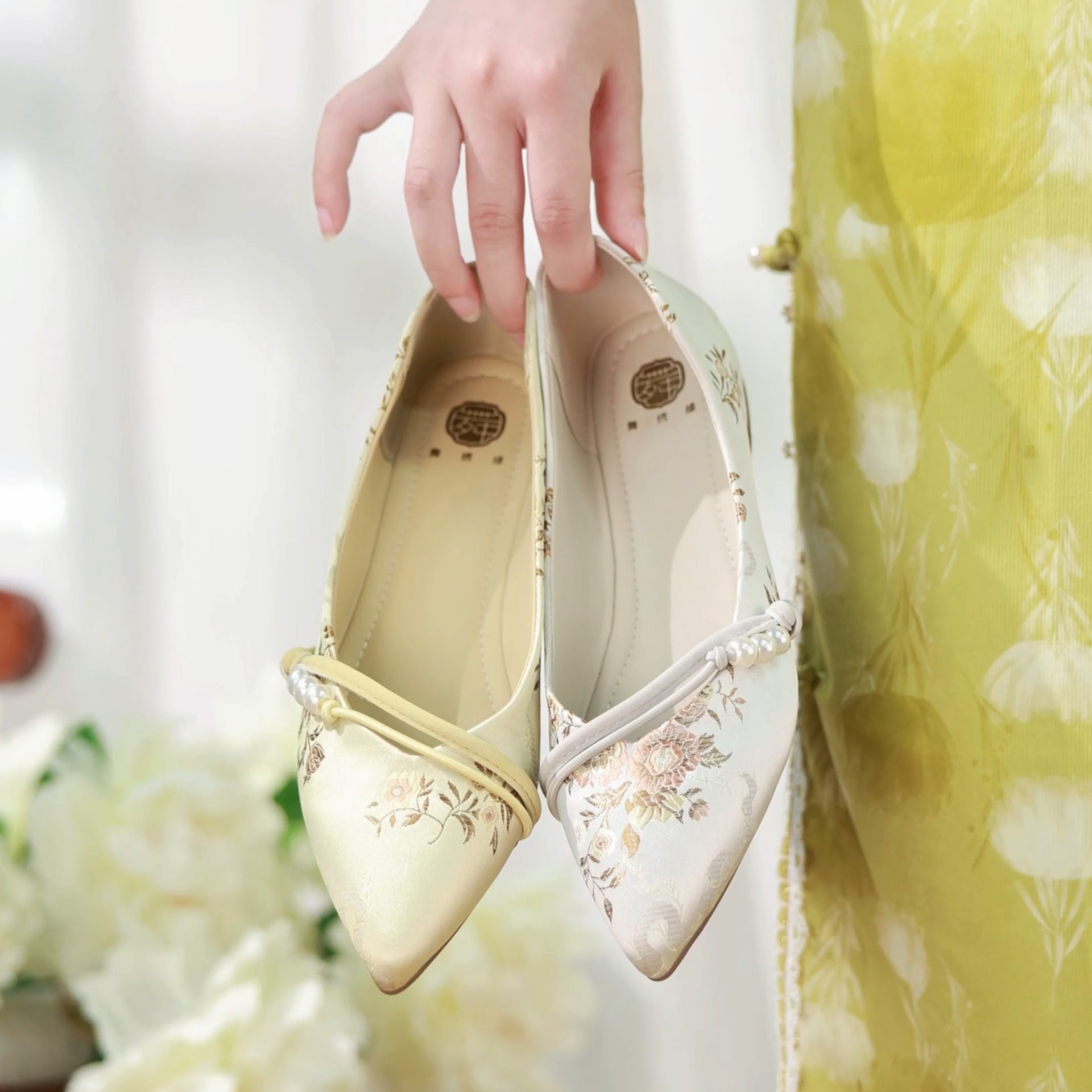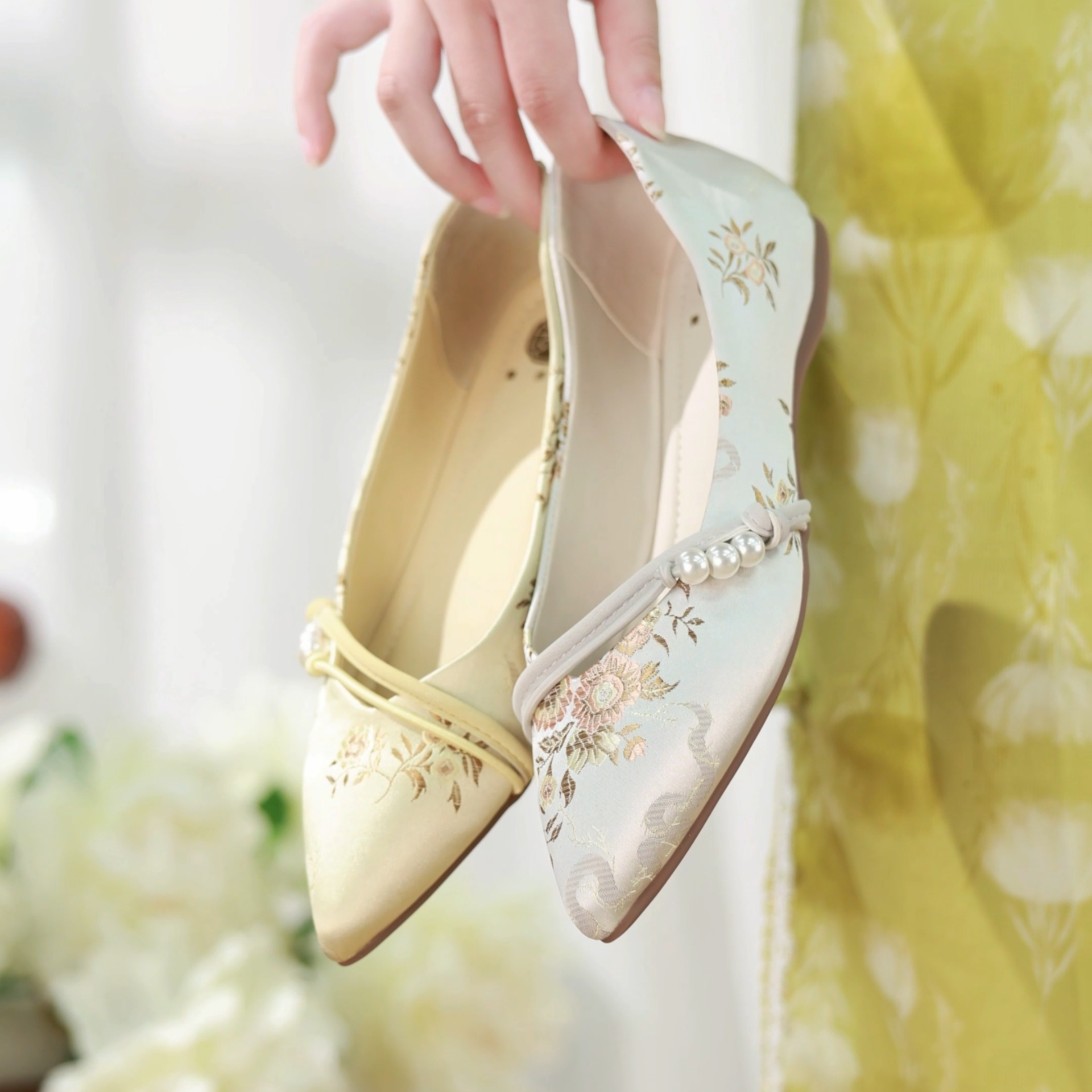 百搭单鞋 新中式 女温柔气质瓢鞋 子复古尖头浅口平底布鞋 国风旗袍鞋