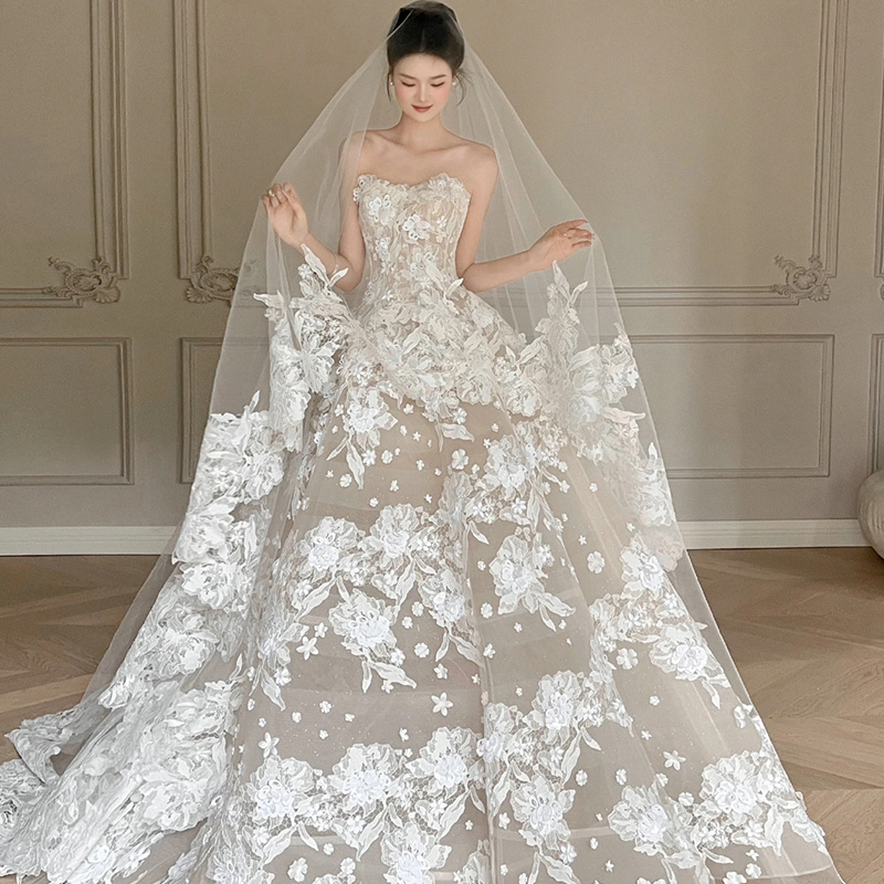 花朵仙气新娘结婚婚纱礼服公主裙小个子女 2025新款 阿尔忒弥斯