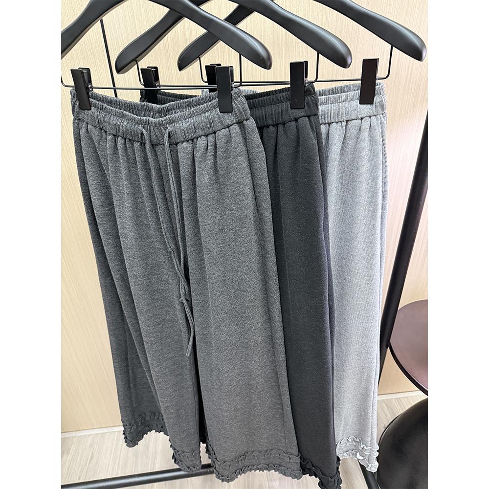 拼接木耳边百搭休闲裤 长裤 直筒裤 舒适阔腿裤 女士韩版 2025早秋新款