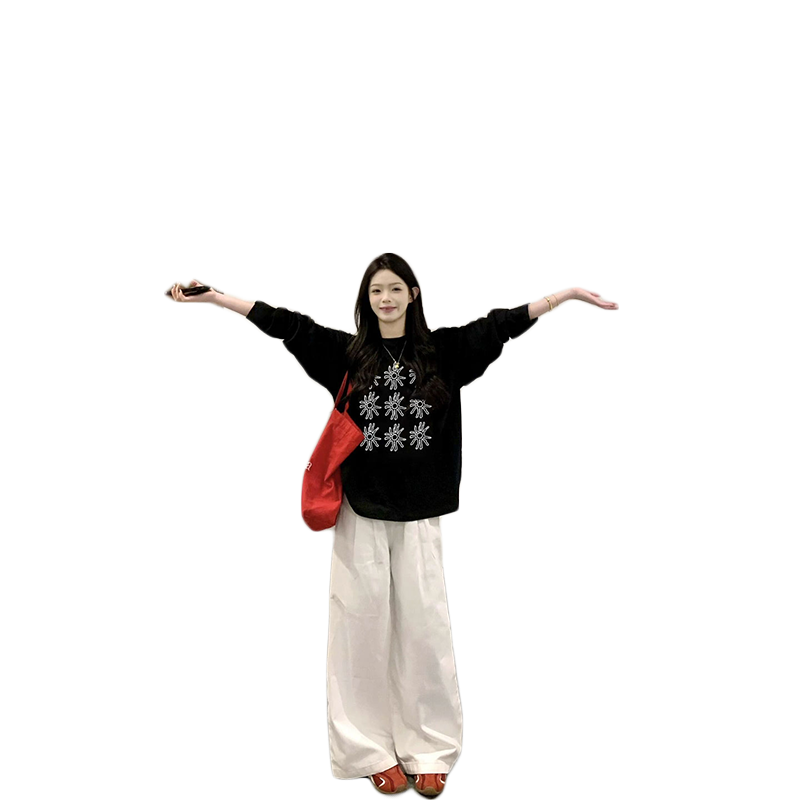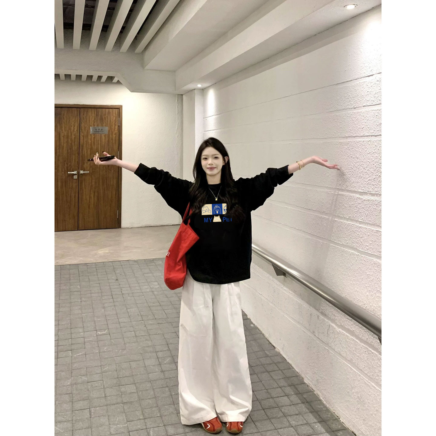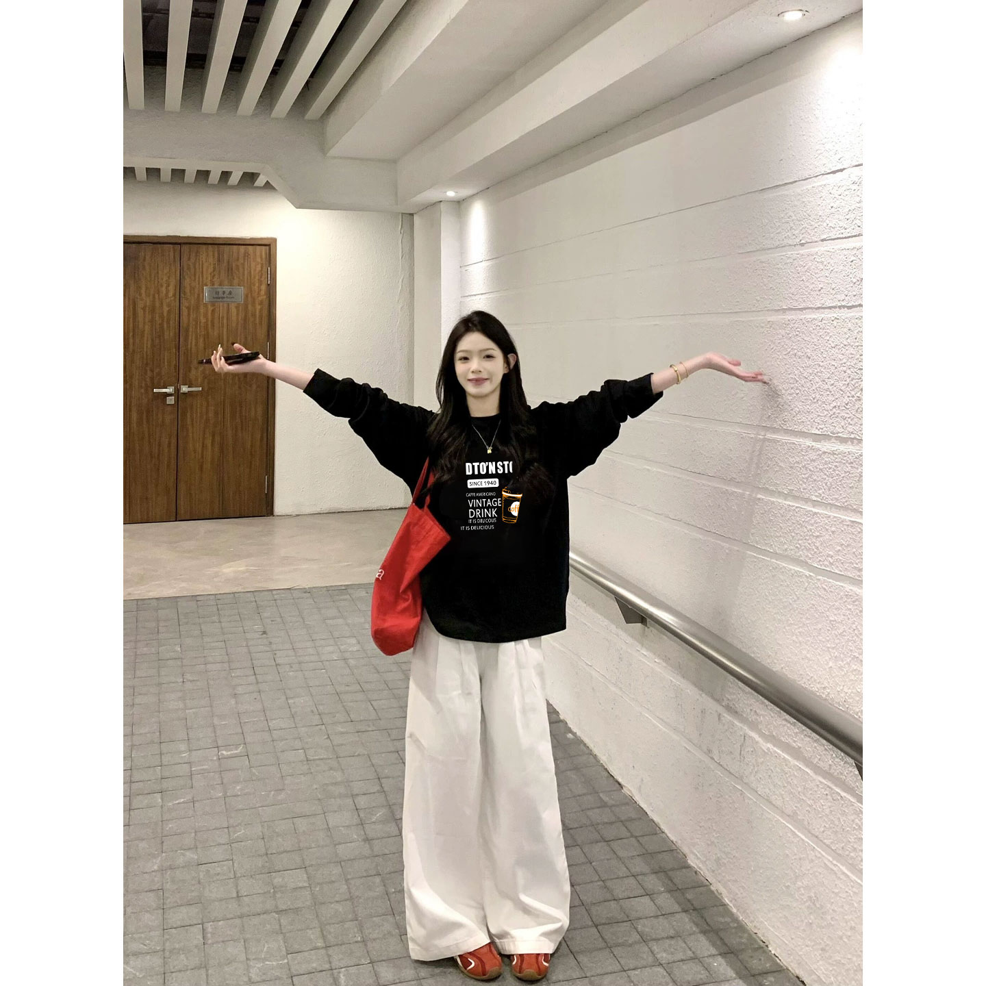 t恤女2025新款 女装 冬季 大码 上衣早秋单穿 内搭打底衫 黑色纯棉长袖