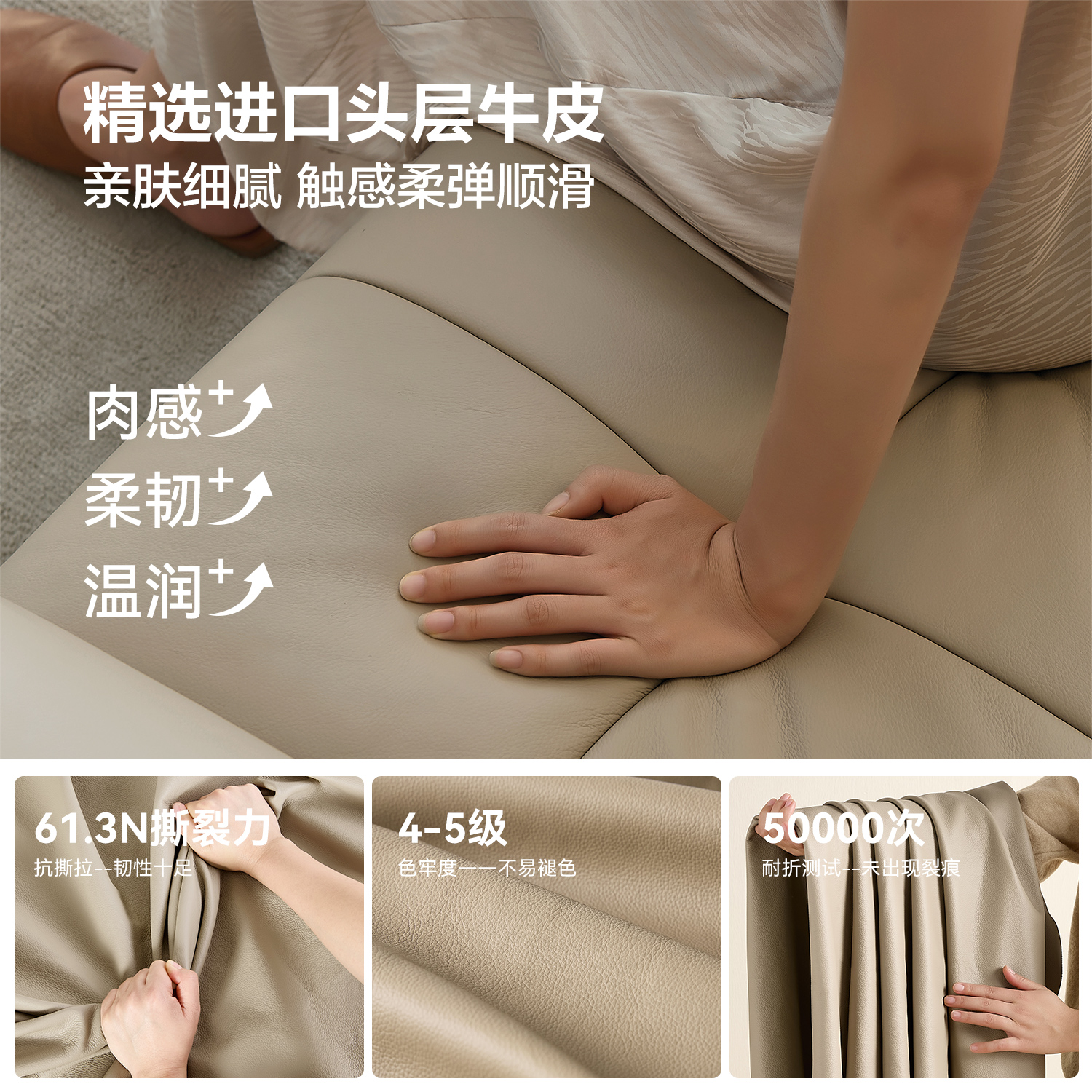 法莎蒂现代奶油风大象耳朵真皮沙发小户型意式 极简皮艺直排沙发