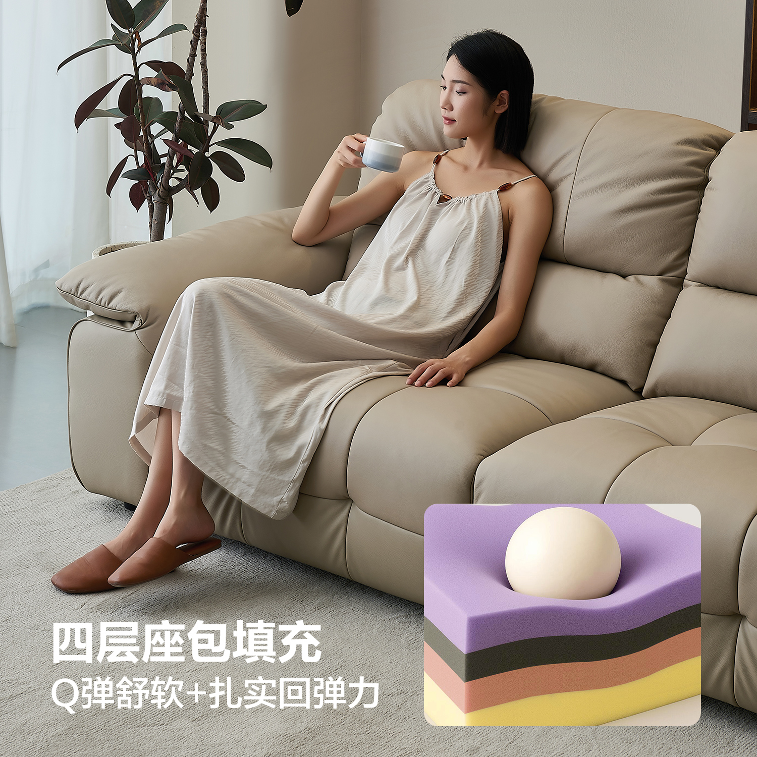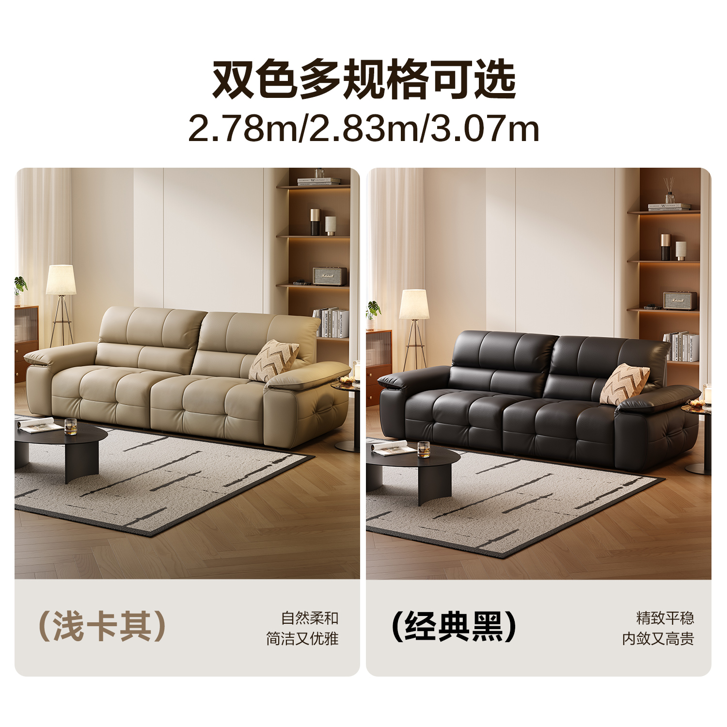 法莎蒂意式 极简皮艺直排棉花糖沙发 极简拉扣真皮沙发小户型意式