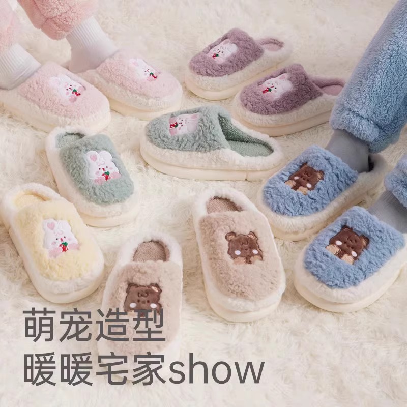 情侣厚底防滑棉拖可爱居家室内加绒保暖男 毛拖鞋 三利棉拖鞋 女冬季