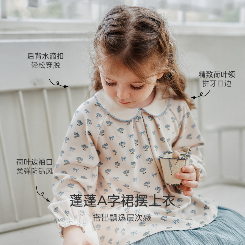上衣娃娃领荷叶边女宝宝可爱小衫 Oak 女童长袖 新品 T恤 Family秋季