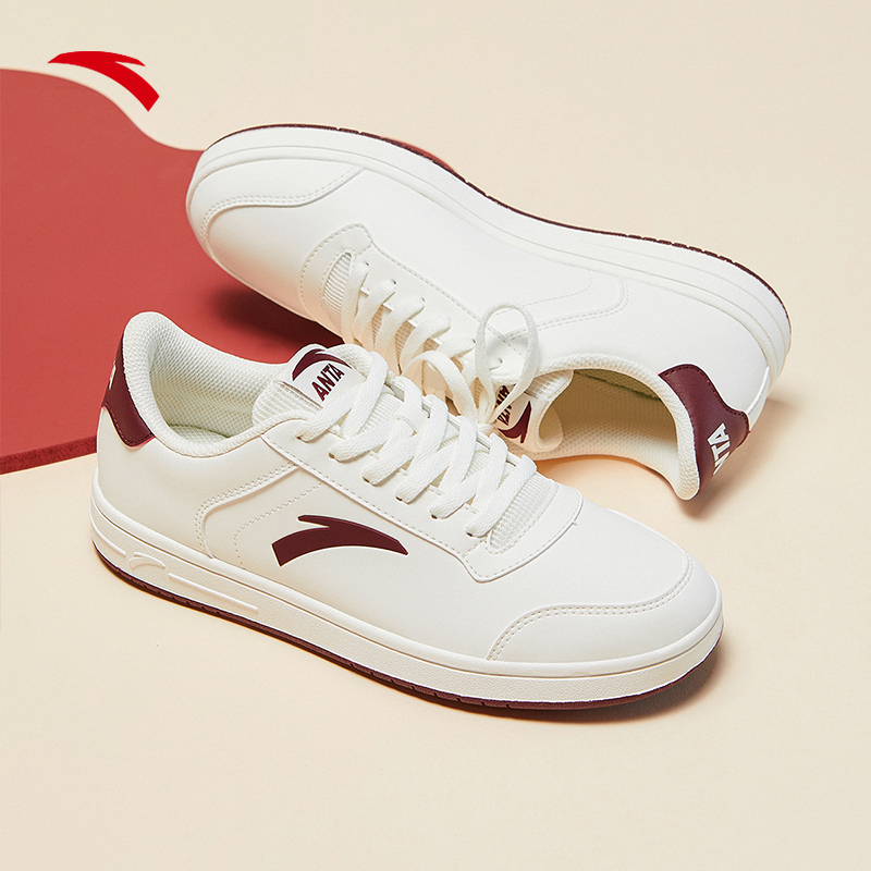 皮面小白鞋 平底休闲运动鞋 撞色低帮板鞋 新款 子 女2025秋季 安踏经典