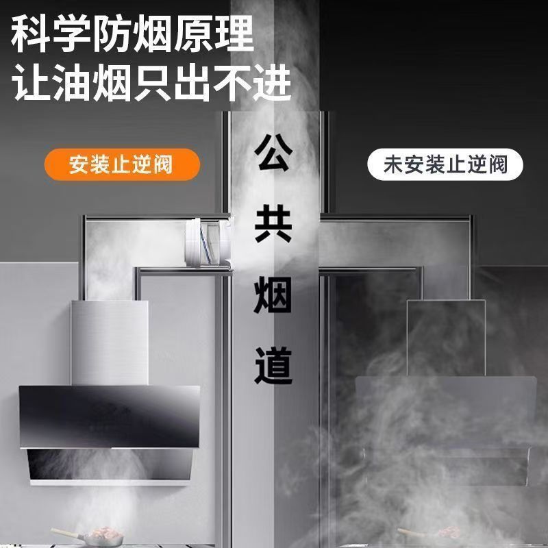 油烟机止逆阀厨房烟道止回阀专用排烟管单向止烟卫生间变径防烟宝