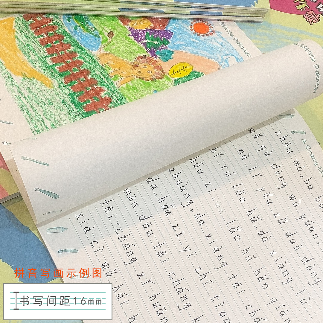 微黄护眼加厚纸张涂鸦小作家大宽格英语写画日记本大格子思维导图英文练习册