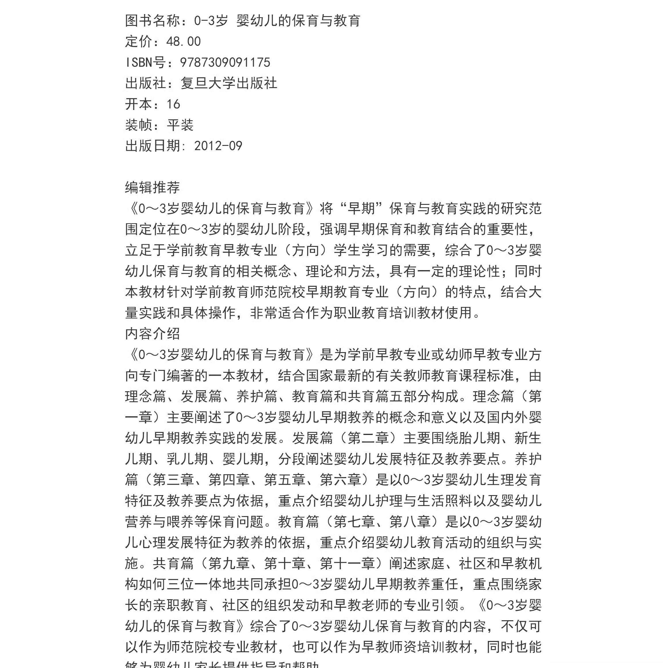 全国学前教育专业 新课程标准 宝宝早教启蒙书 9787309091175复旦大学出版 保育与教育 幼儿教育儿童书籍 社 3岁婴幼儿