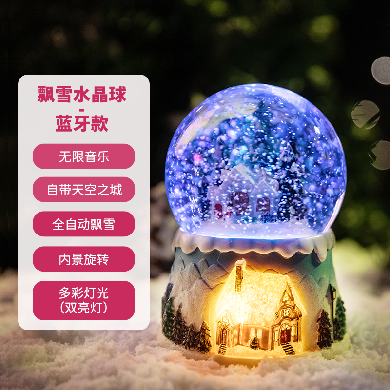 儿童新年礼物创意小礼品下雪水晶球音乐盒八音盒旋转奇妙屋雪景球