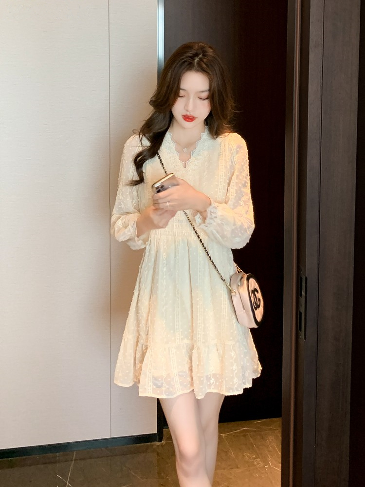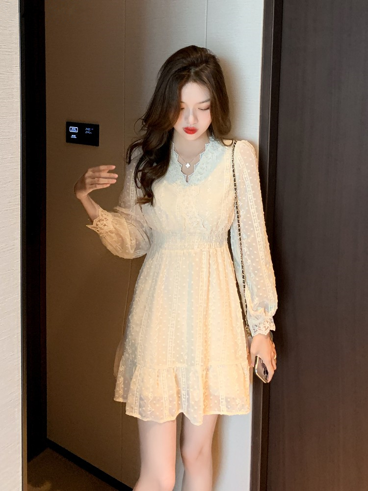 高级感气质收腰显瘦长裙子 连衣裙女韩版 2025秋季 polo领假两件长袖