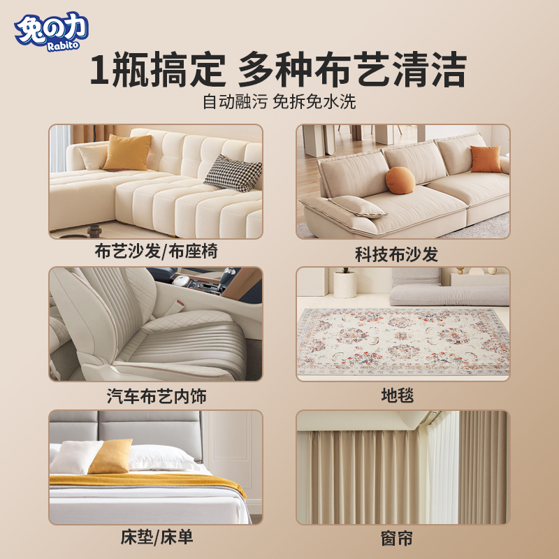 兔力布艺沙发清洁剂布清洗神器免水洗去污擦地毯床垫污渍干洗墙布