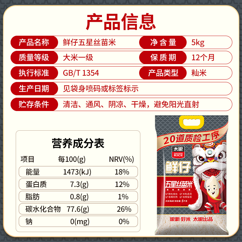 下拉详情领淘金币 太粮鲜仔五星丝苗米5kg长粒米油粘米籼米10斤装
