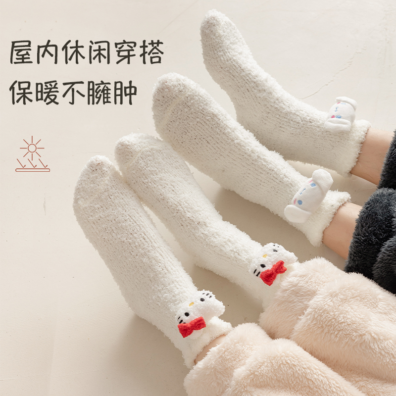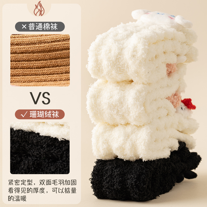 睡眠礼盒 加厚保暖圣诞毛毛绒袜子女男士 地板袜情侣款 珊瑚绒秋冬季