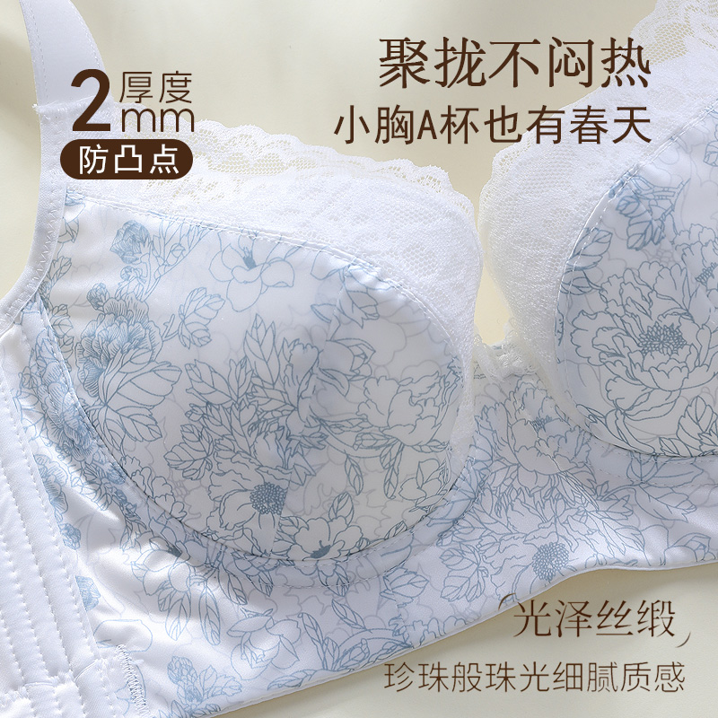 新光面上托侧推全罩杯大胸显小文胸 遐无痕内衣女薄款 小青提