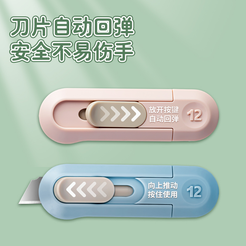 得力纽赛美工刀快递刀小刀壁纸刀裁纸刀小型安全便携高颜值自动回弹大学生考研小刀拆卷刀家用拆快递开箱神器