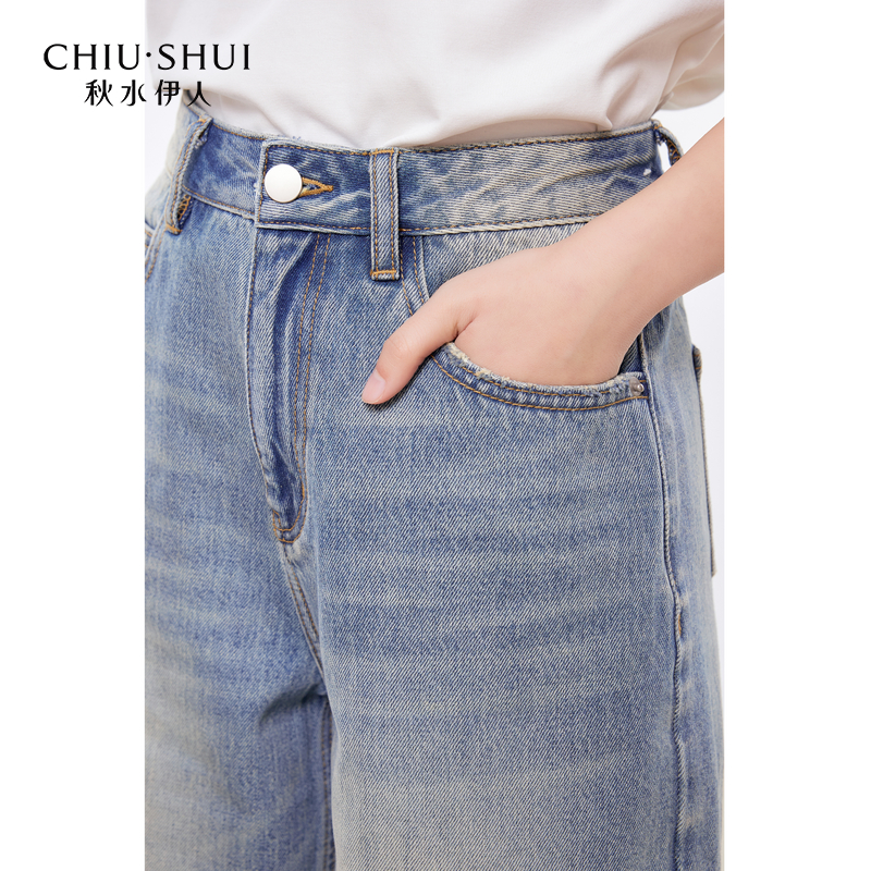 女休闲简约宽松八分裤 秋水伊人A型中高腰多口袋牛仔裤 2025夏新款