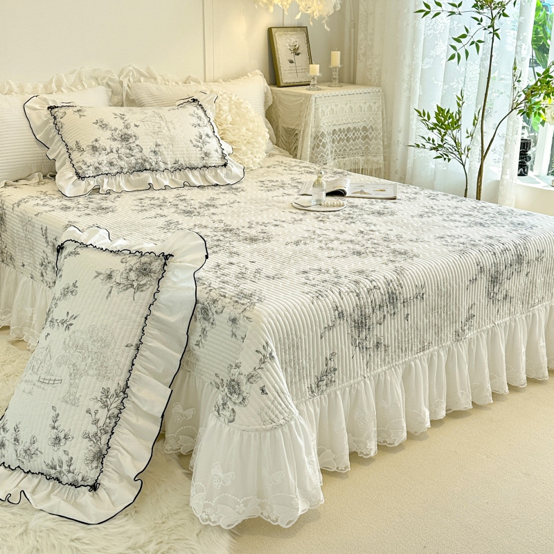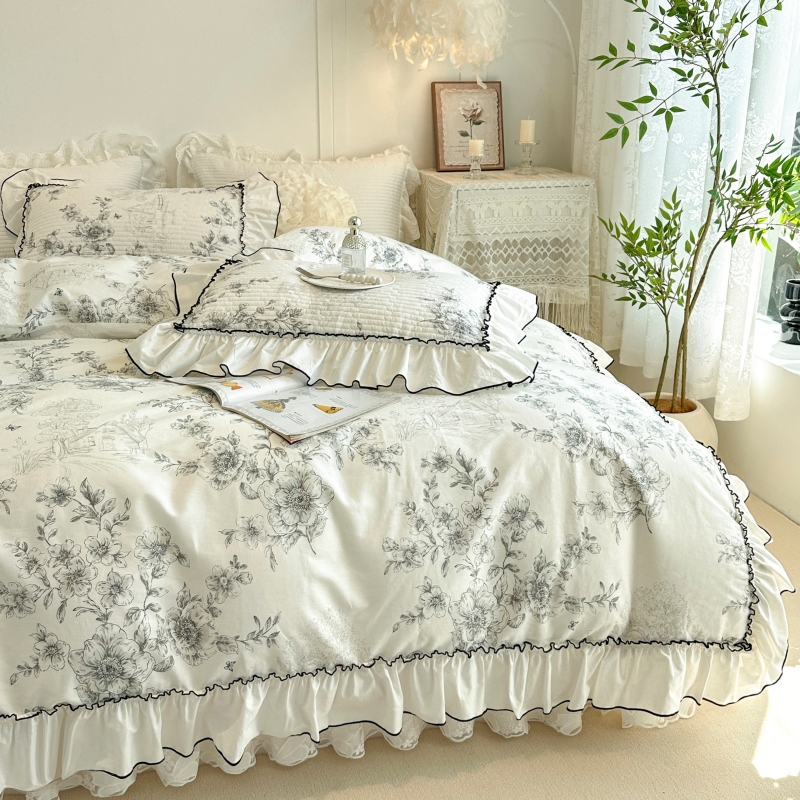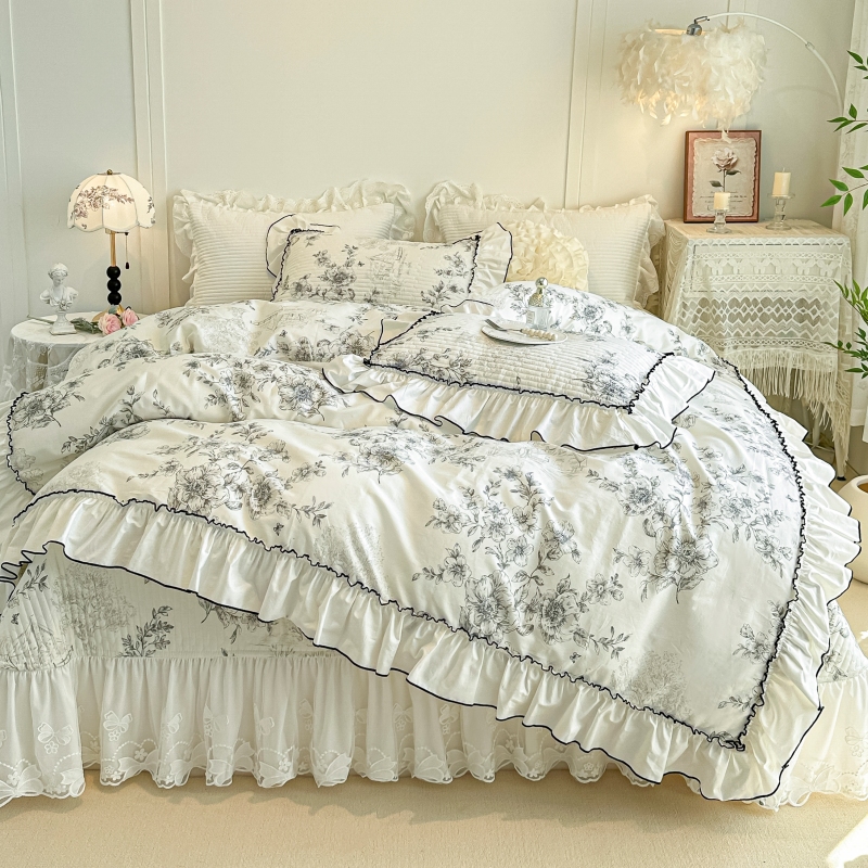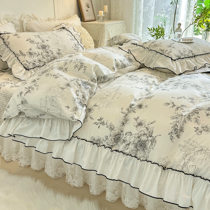 法式 碎花浪漫赫本风4 蕾丝花边夹棉床盖四件套全棉纯棉2025年新款