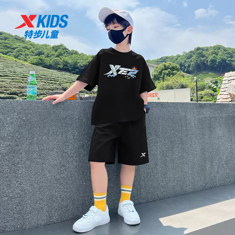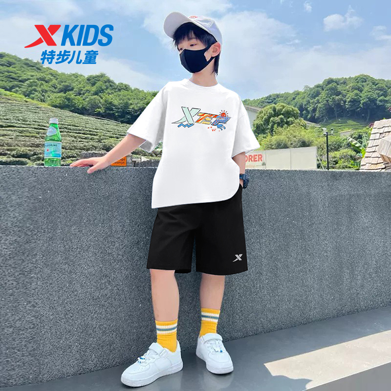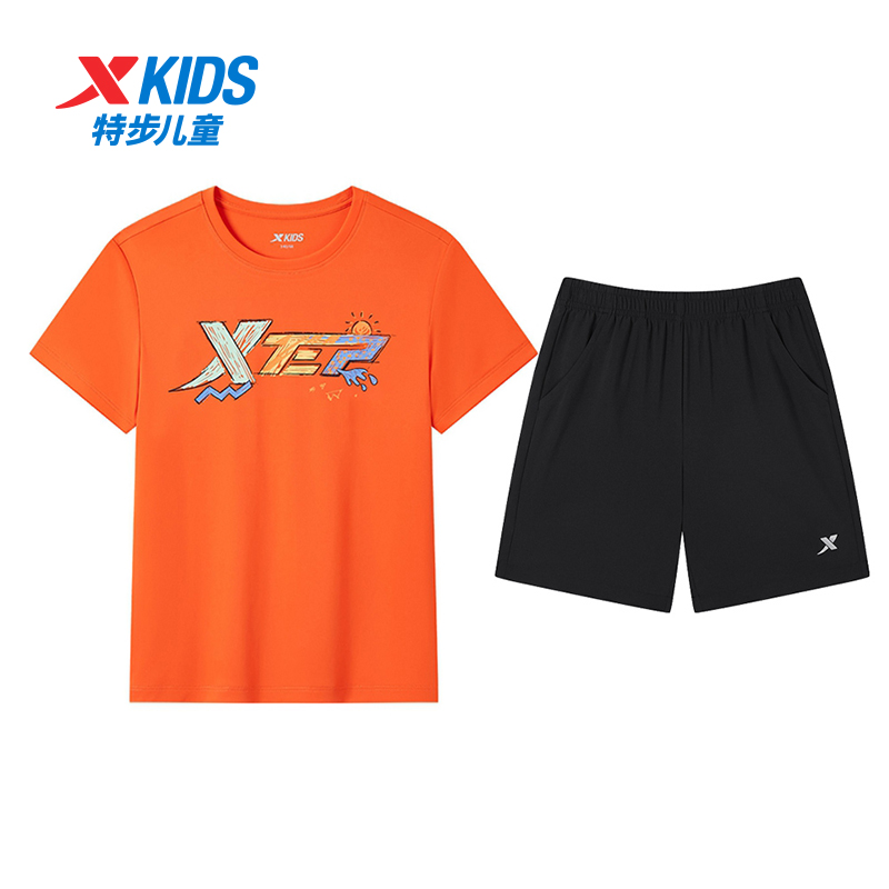 新款 2025秋季 儿童短袖 短裤 特步童装 两件套大童装 儿童运动速干套装