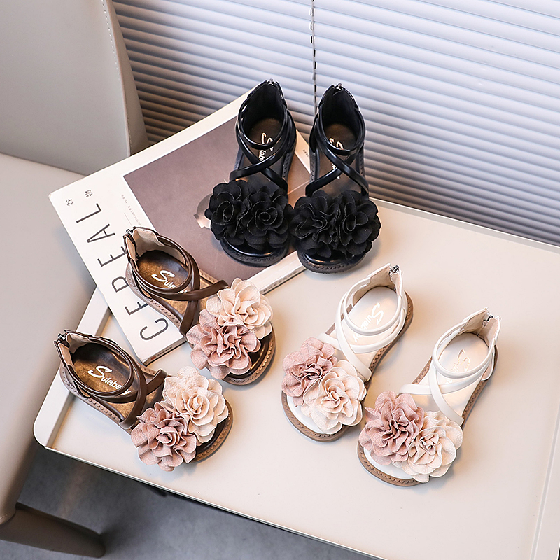 子中大童软底高帮露趾罗马鞋 女童凉鞋 儿童花朵公主鞋 新款 2025夏季