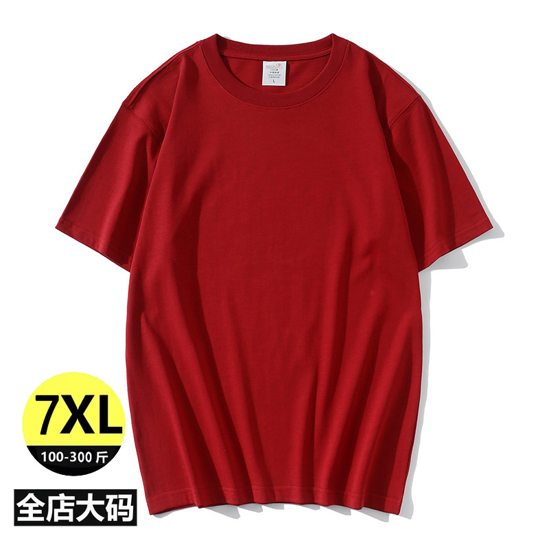 纯棉休闲纯色半袖 夏季 宽松胖子肥佬加肥加大码 男式 潮 白色T恤短袖