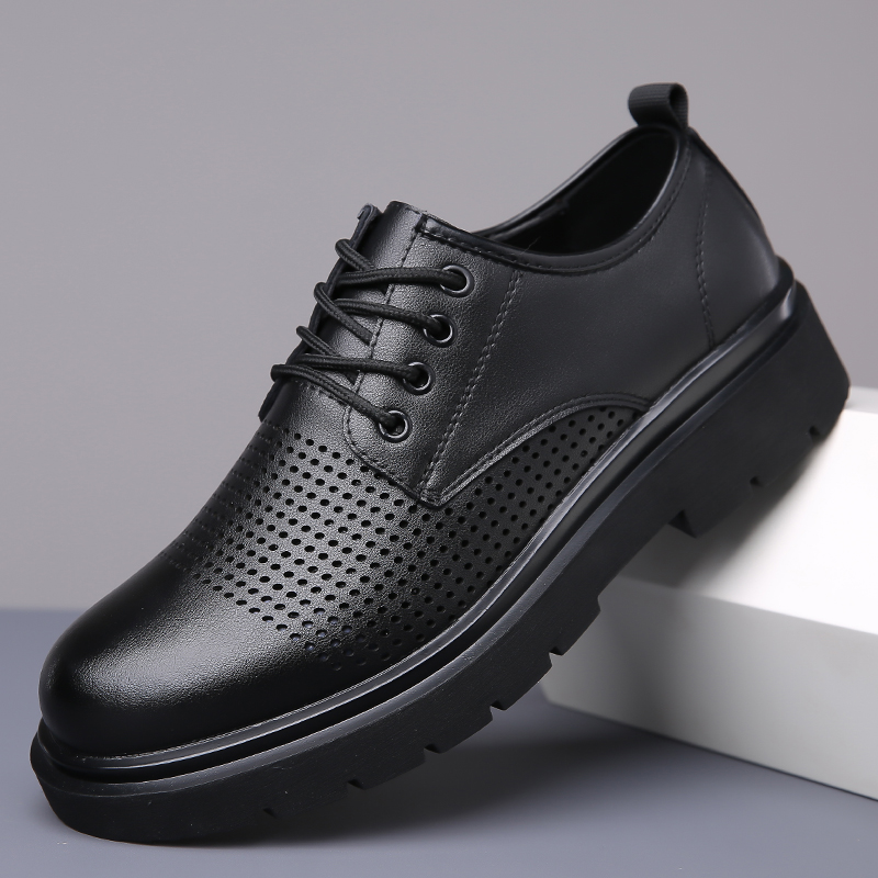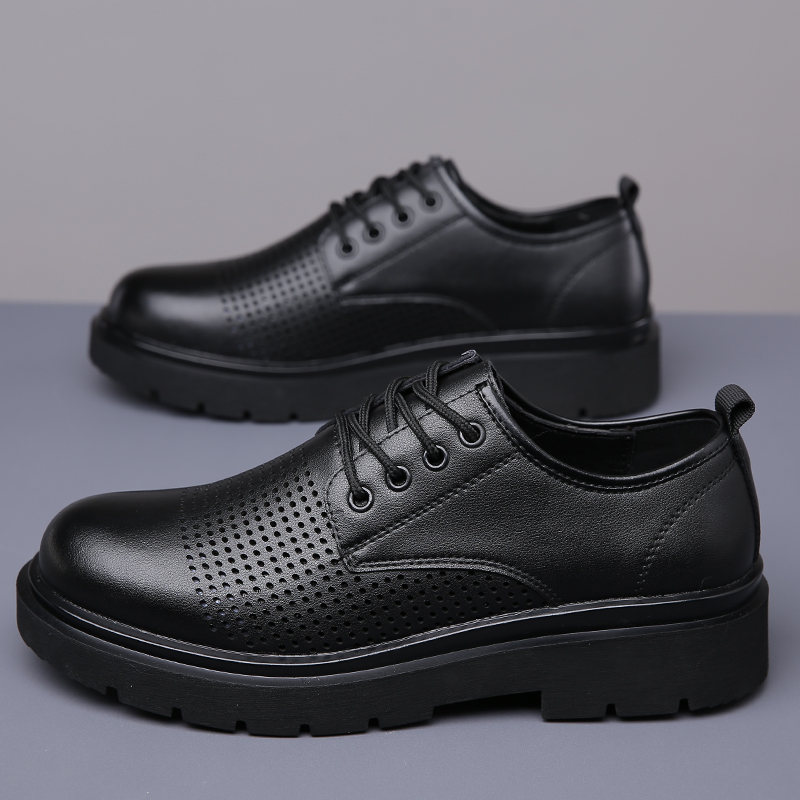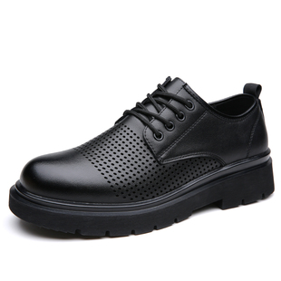 透气孔镂空凉鞋 夏季 软皮面厚底防滑耐磨工作鞋 软底凉皮鞋 黑色男鞋