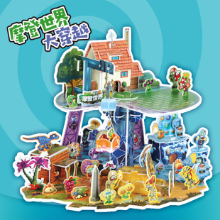 植物大战僵尸2奇妙时空之旅酷拼插巧手拼插3D立体拼图 10岁 立体拼插拼装 小人书漫画书本故事 智力游戏书6 摩登世界大穿越