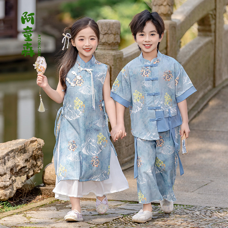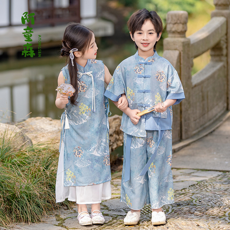 国学服幼儿园六一表演服 男童古装 儿童汉服女童新中式 旗袍国风套装