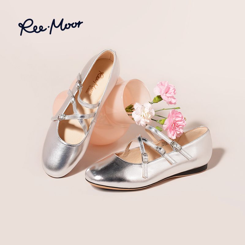 单鞋 复古银色圆头交叉带浅口玛丽珍鞋 法式 REEMOOR睿慕2025秋新款