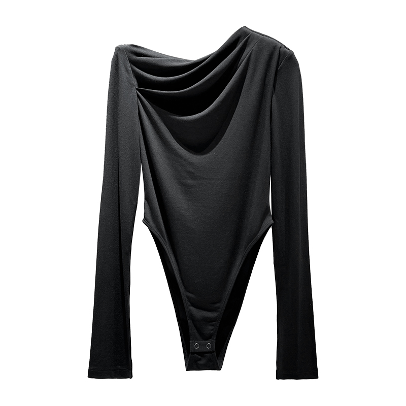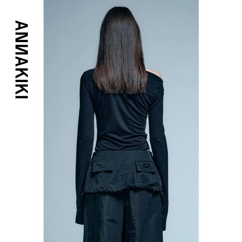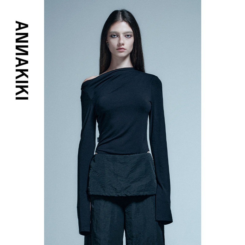 黑色肩部捏褶开衩长袖 小众设计师款 连体衣女 25春装 ANNAKIKI上衣