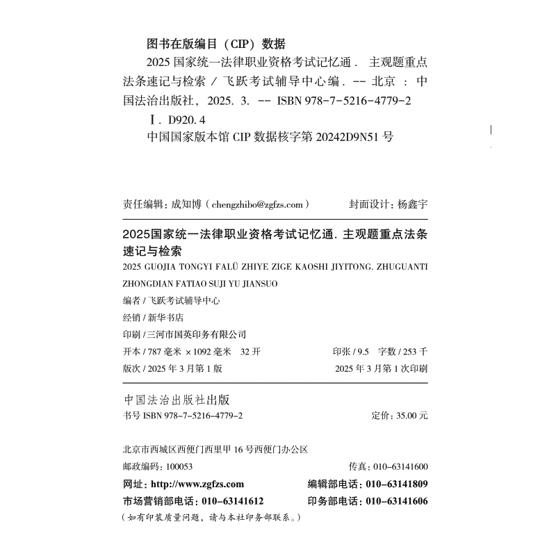 飞跃考试辅导中心编 2025飞跃版 主观 正版 中国法治出版 主观题重点法条速记与检索 2025国家统一法律职业资格考试 社978 2025记忆通