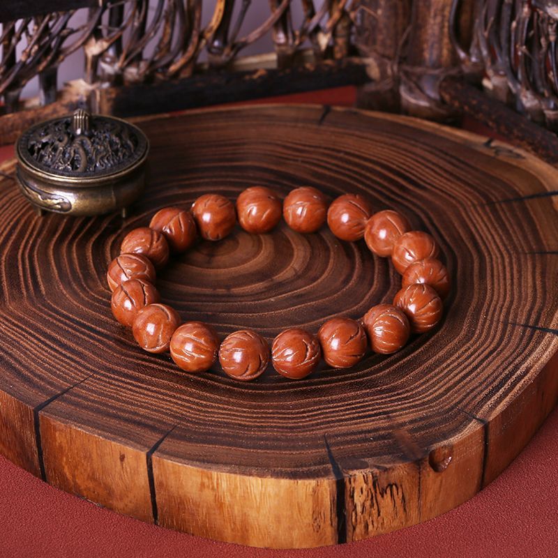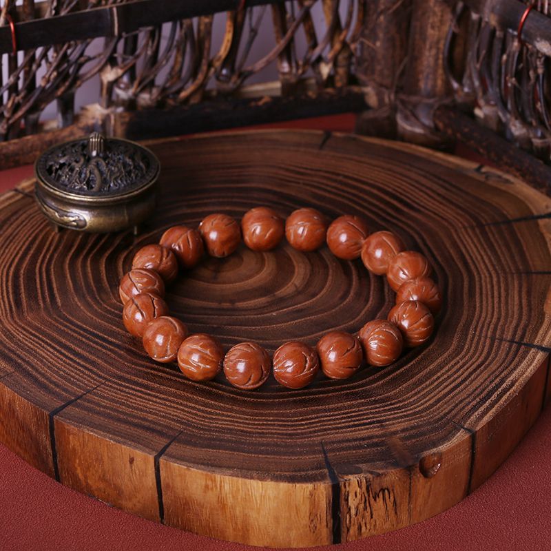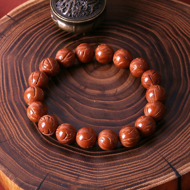 龙年祥瑞天然龙纹桃核手串正圆大光珠秦岭玉龙脊文玩佛珠野生