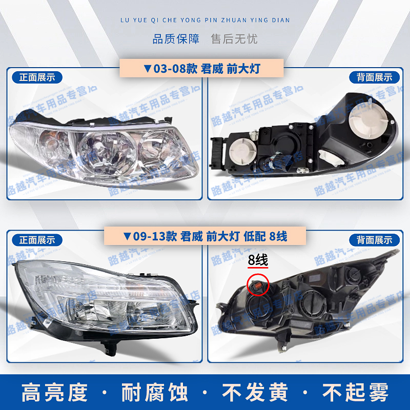 16年款 别克君威前大灯总成车头照明灯罩外壳 适配03