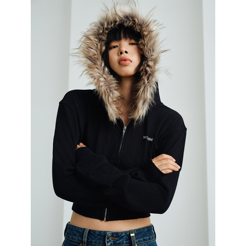 WE11DONE女士短款 日常外套 毛领拉链外套简约休闲通勤时尚