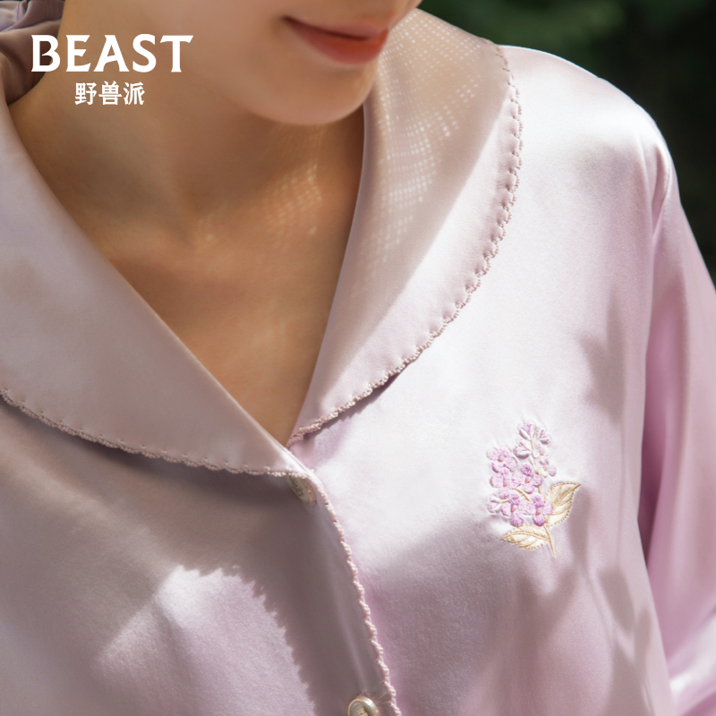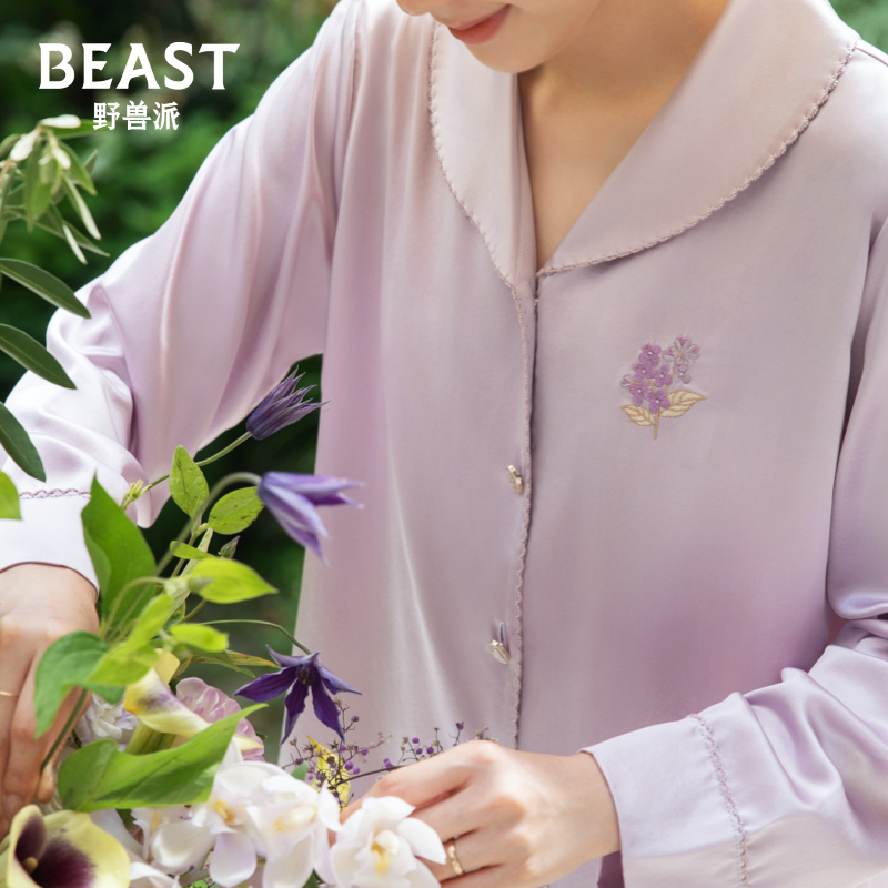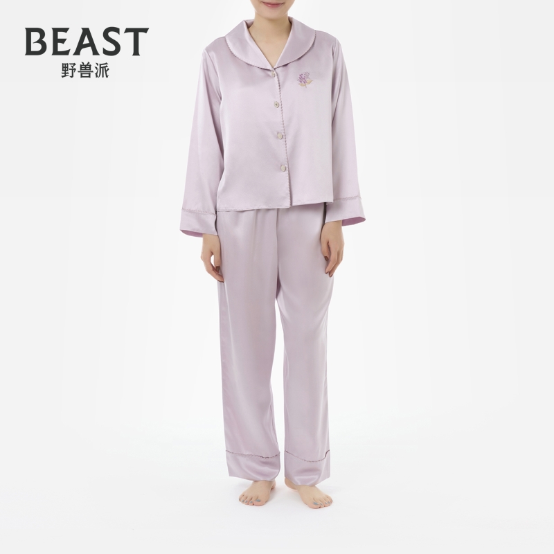 女士生日节日礼物家居套装 套装 长裤 野兽派紫丁香22姆米真丝长袖