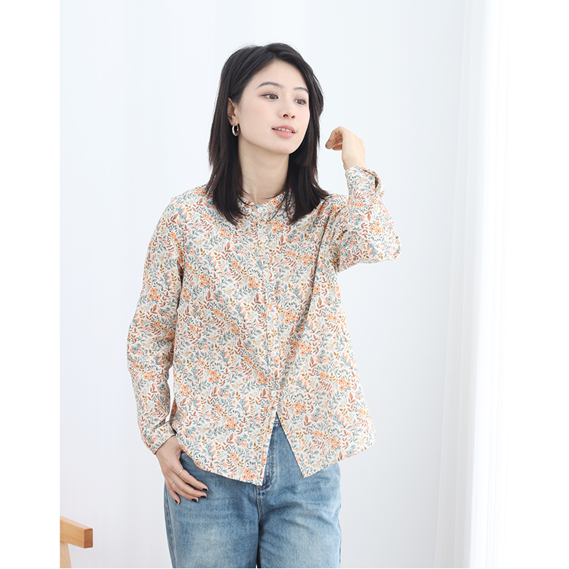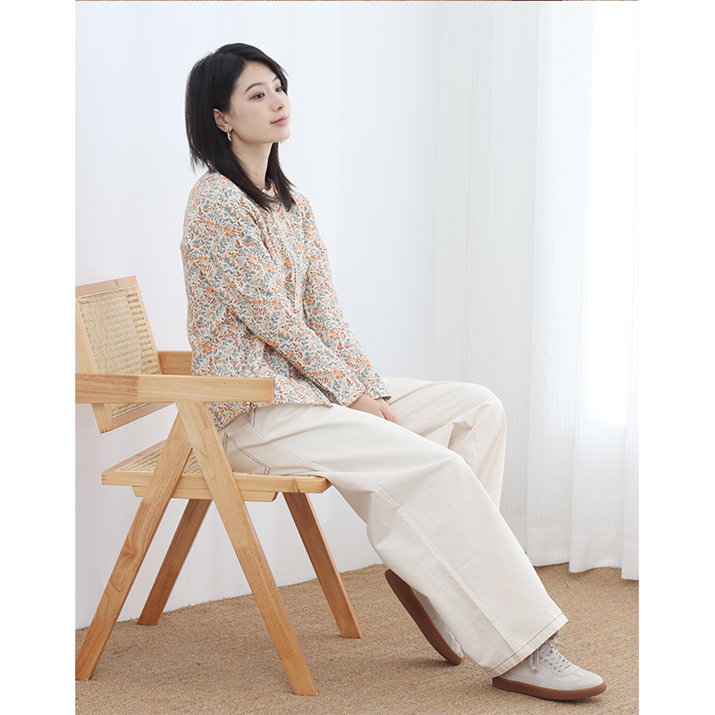 对称贴袋按扣长袖 新款 衬衣上衣 女25夏季 德玛纳复古风翻领牛仔衬衫