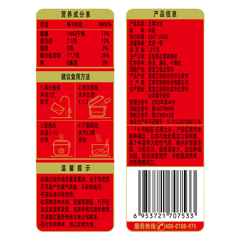 十月稻田东北五常香米 稻香米五常大米 5kg×2袋