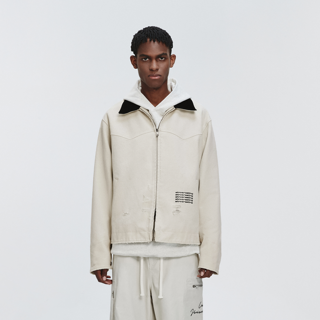 ATRY刺绣夹克外套女春秋季 复古情侣宽松拼接撞色上衣男 国潮牌美式