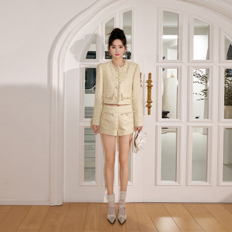 银泰百货 小香风金银丝珍珠粗花呢女短裤 301355 Quarters Three