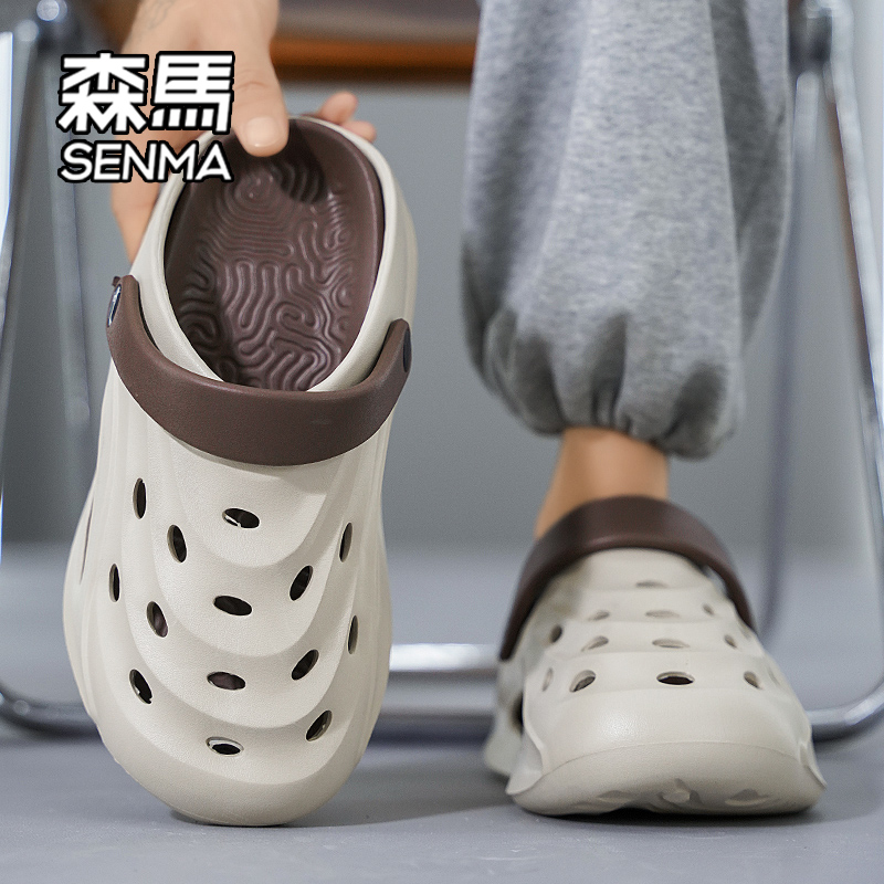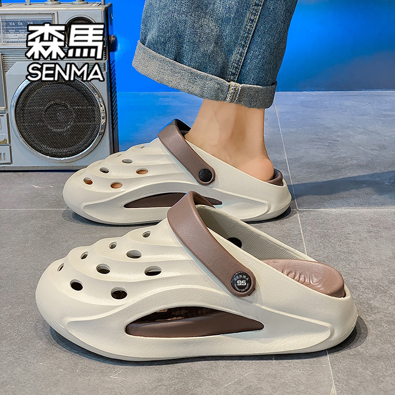 开车包头沙滩凉鞋 外穿休闲厚底运动踩屎感男士 男夏季 森马洞洞鞋