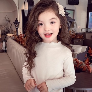 小女孩t恤洋气花边领内搭短款 女童长袖 2025新款 春秋季 上衣 打底衫