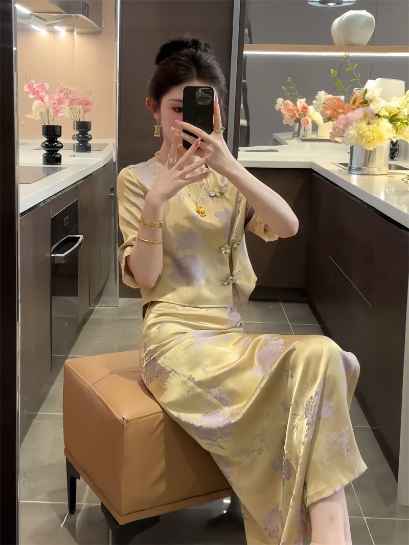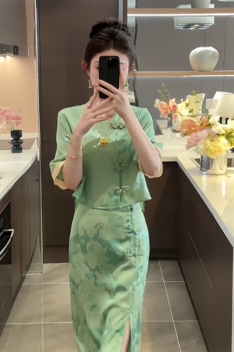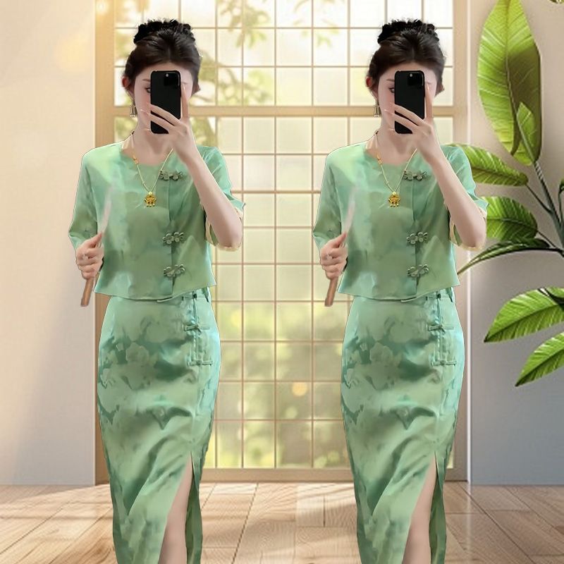 高级感小个子改良短款 新中式 新款 女夏季 旗袍半身裙两件套 国风套装