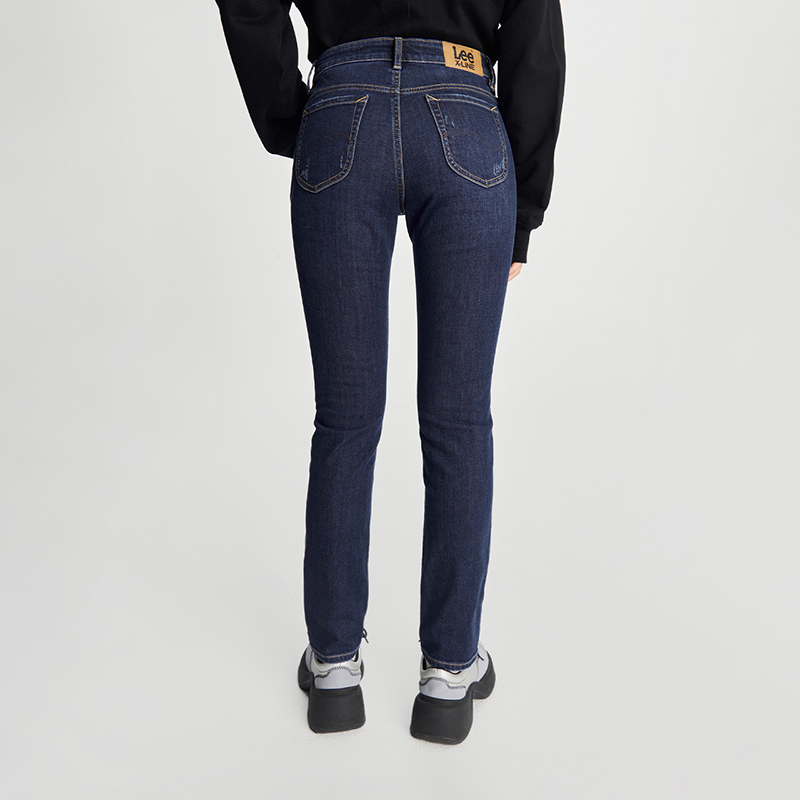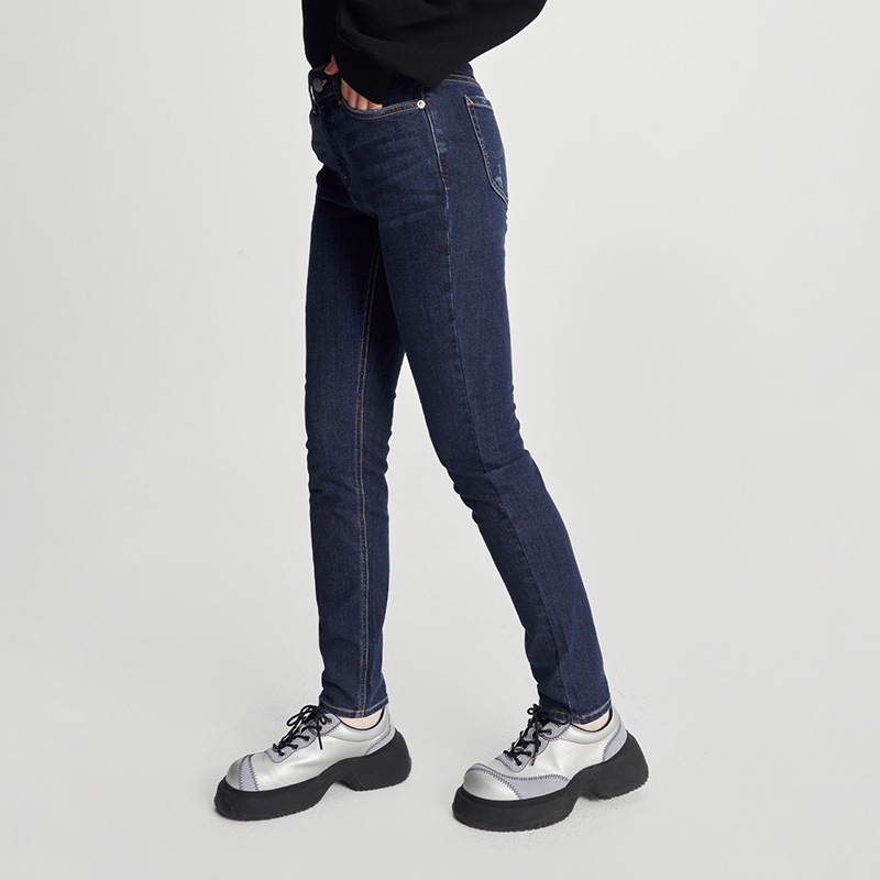 女05415301 牛仔长裤 佐丹奴牛仔裤 女原色洗水复古收褶半松紧腰薄款