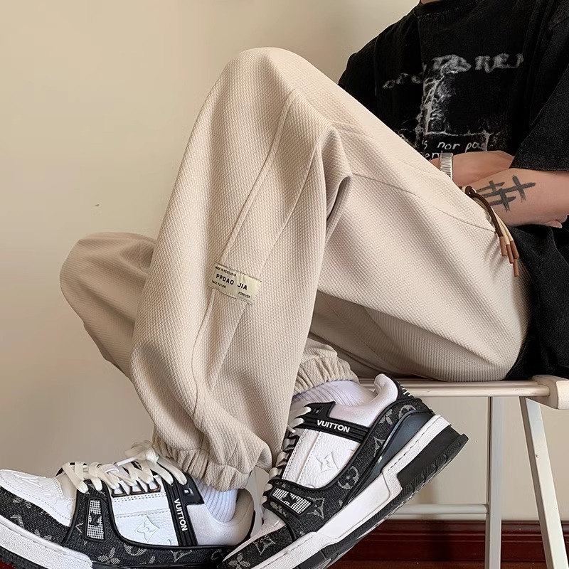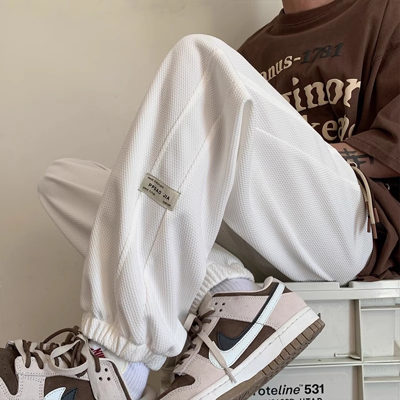 青少年潮牌长裤 华夫格休闲裤 宽松直筒九分束脚运动卫裤 秋季 子男士