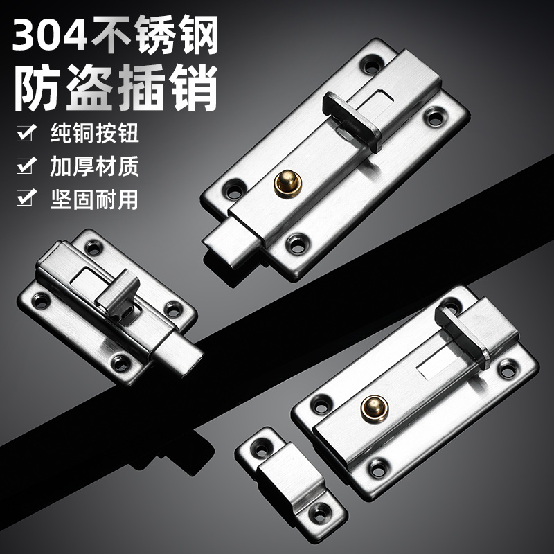 304不锈钢加厚自动弹簧插销手动锁扣门锁门闩卫生间防盗木门门栓