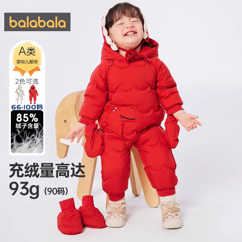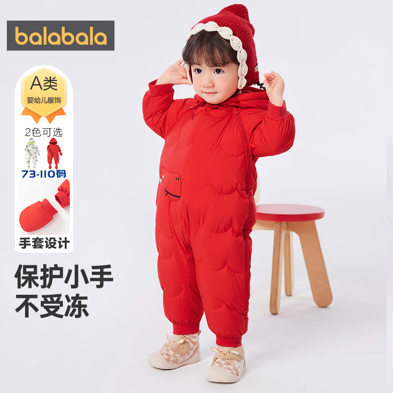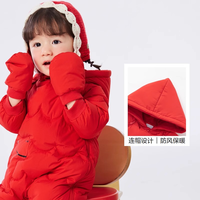 男童女童外出抱衣加厚季 巴拉巴拉宝宝羽绒连体衣婴儿衣服冬装 新款
