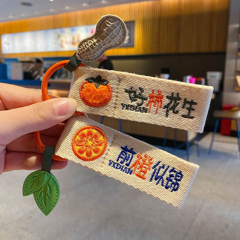 2025年新款 布艺刺绣好柿发生车钥匙扣女精致书包挂件钥匙链小饰品