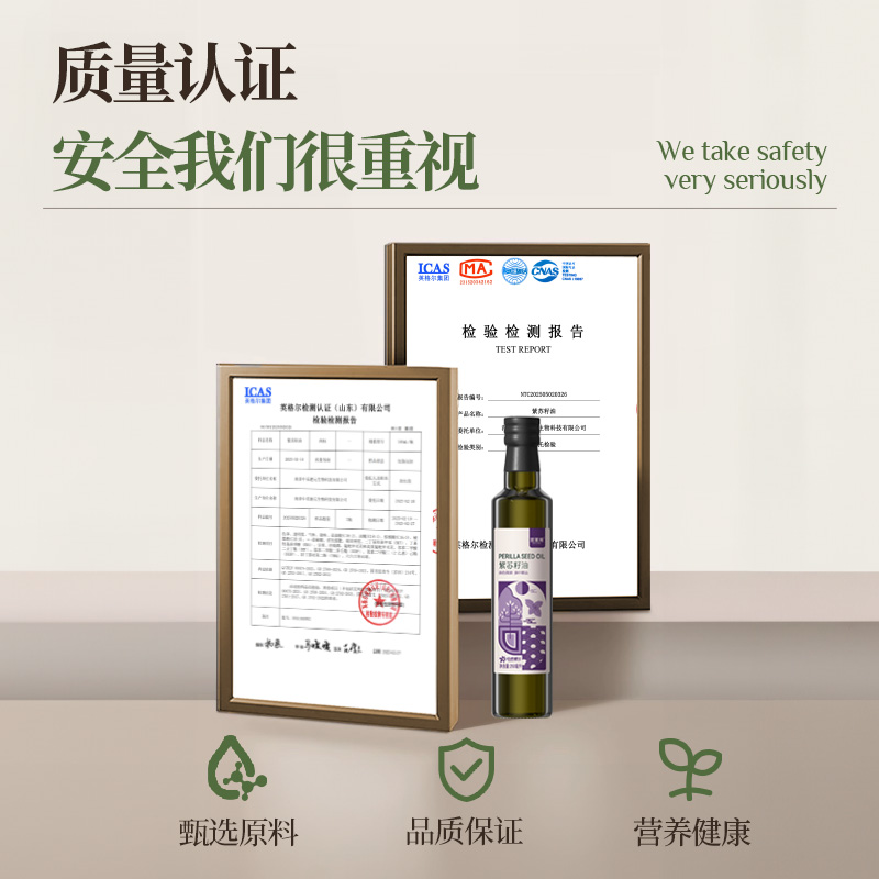 三主元 玻璃瓶 物理压榨紫苏籽油纯苏子家用食用油可直饮凉拌250ML